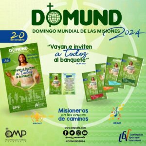 El tema escogido por el Papa Francisco para la Jornada Mundial de las Misiones (Domund 2024) es “Vayan e inviten a todos al Banquete” (cf. Mt 22,9), y en Venezuela la temática que la acompaña es “Misioneros en los cruces de caminos”, con el fin de lograr que cada uno viva todo el mes de octubre desde la cooperación espiritual, material y en salida misionera.